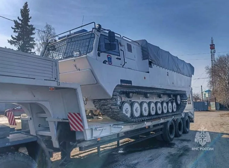 «В Курганскую область из Уральского учебно-спасательного центра МЧС России (поселок Новогорный Челябинской области) доставлены два плавающих транспортера ПТС. В настоящее время один из них находится в Звериноголовском МО, второй — в Кургане», — говорится в сообщении. Они предназначены для обеспечения жизнедеятельности и организации переправы людей из подтопляемых населенных пунктов.