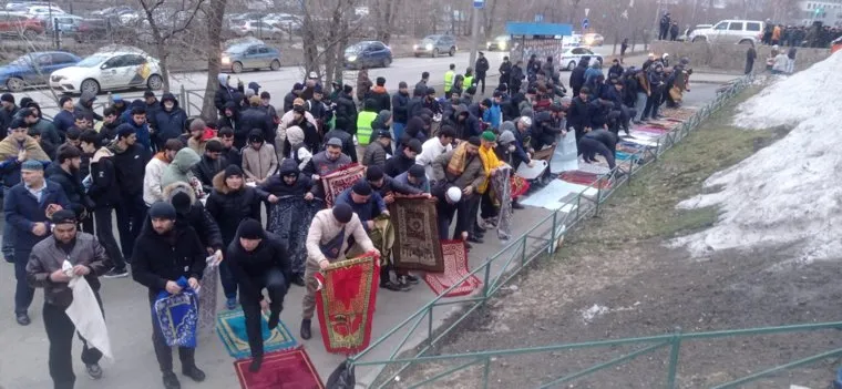 Тысячи мусульман вышли на молитву в Екатеринбурге, ради них перекрыли улицы. Фото