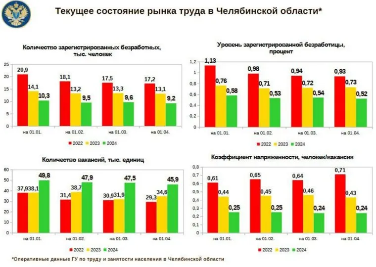В Челябинской области в первом квартале 2024 года уровень безработицы снизился до 9,2 тысяч человек