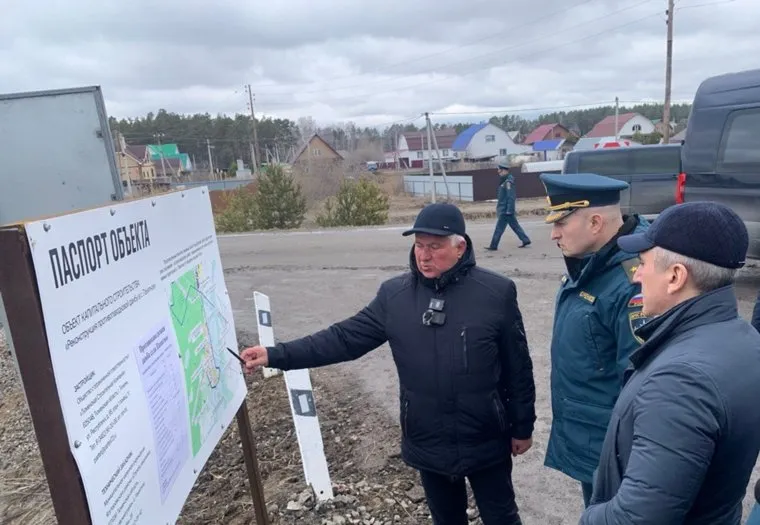 Губернатор Моор и глава МЧС Куренков осмотрели дамбу в Тюменской области. Фото