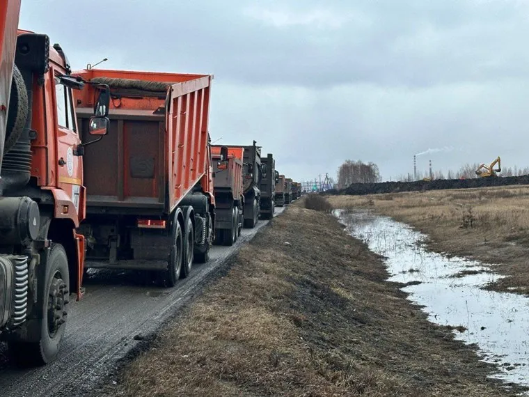 Тысячи кубометров грунта везут для отсыпки дамбы