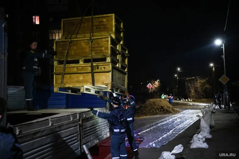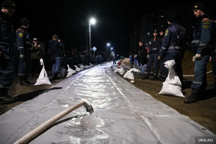 На набережной в Кургане в ночь на 14 апреля специалисты МЧС приступили к установке водоналивных дамб. Всего планируют установить 28 комплектов защитных сооружений. О том, как работают спасатели — узнаете из фоторепортажа URA.RU.