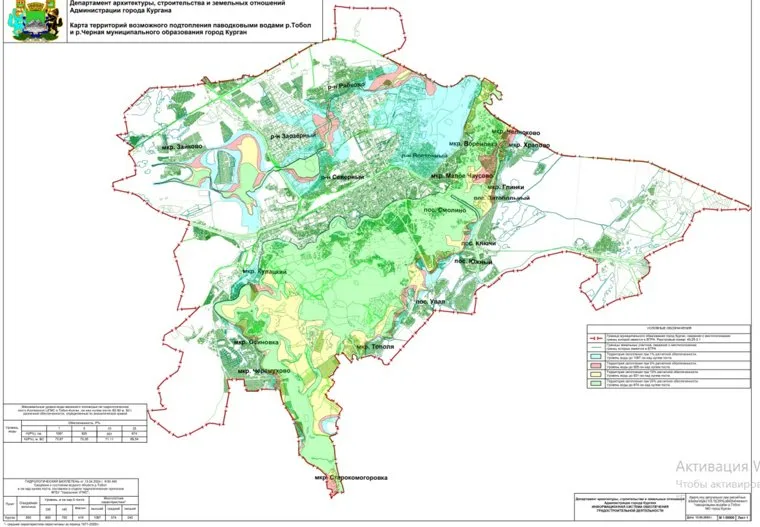 17 микрорайонов Кургана накроет водой при достижении уровня Тобола 674 см. Сейчас на 16:00 вода в реке увеличилась до 547 см. Информация о зонах затопления содержится в данных департамента архитектуры, строительства и земельных отношений администрации Кургана.