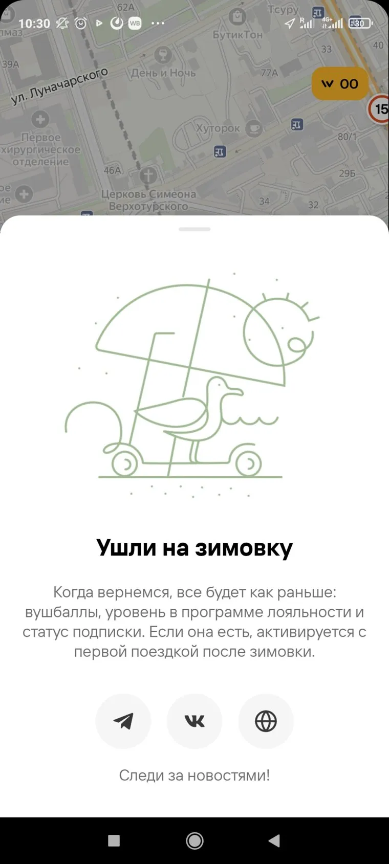 «Ушли на зимовку. Когда вернемся, все будет как раньше», — сообщается в приложении Whoosh.
