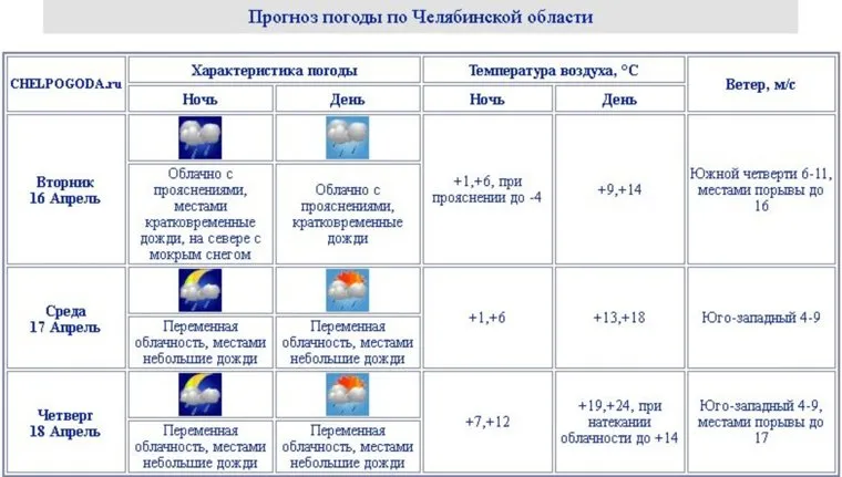«В ночь на 16 апреля местами кратковременные дожди, на севере Челябинской области с мокрым снегом. Температура воздуха при прояснении будет опускаться до минус 4 градусов. Порывы ветра будут достигать 16 метров в секунду», — сообщили синоптики.