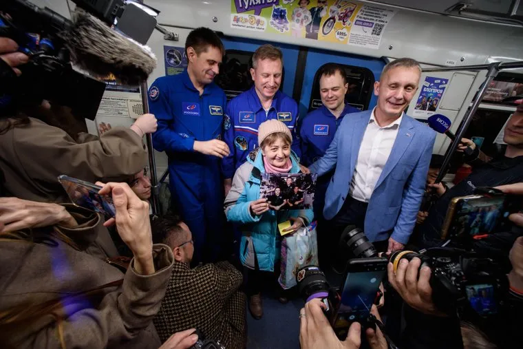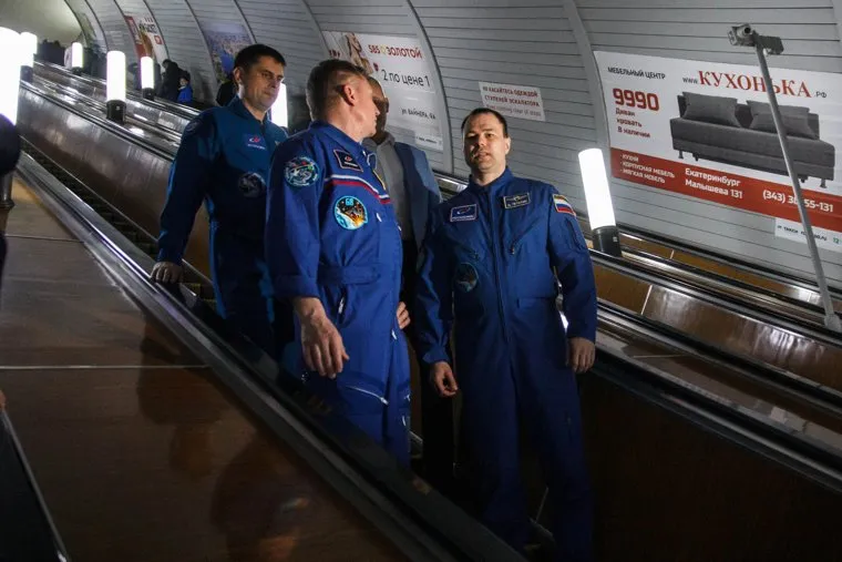 На станции метро «Площадь 1905 года» в Екатеринбурге три космонавта — Сергей Прокопьев, Дмитрий Петелин и Андрей Федяев — запустили «космический» состав, в рамках форума «Урал космический». На церемонии побывал корреспондент URA.RU