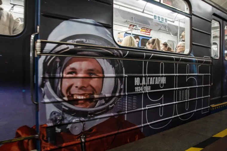 Юрий Гагарин улыбнулся екатеринбуржцам со стены вагона «космического» поезда