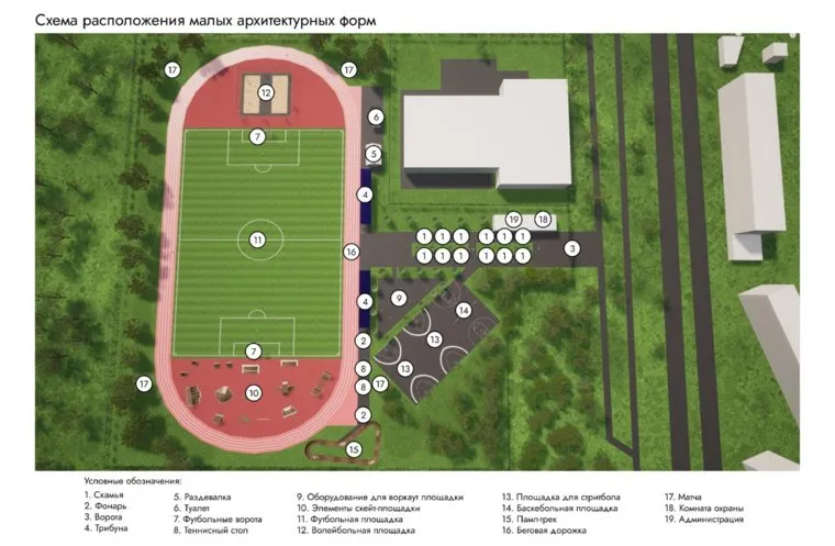 На стадионе будут также установлены скамейки и трибуны. Появится туалет, раздевалка и новое освещение. После завершения ремонта планируется проведение бесплатных спортивных занятий.