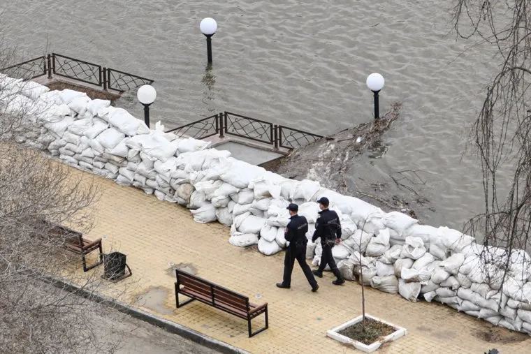 В Кургане возросший уровень реки Тобол, погружает в свои воды набережную, которая является излюбленным местом отдыха горожан. Вода заполнила первый уровень набережной, практически поглотив фонари. На одном из участков добровольцы укрепляют дамбу, опасаясь за ее сохранность.