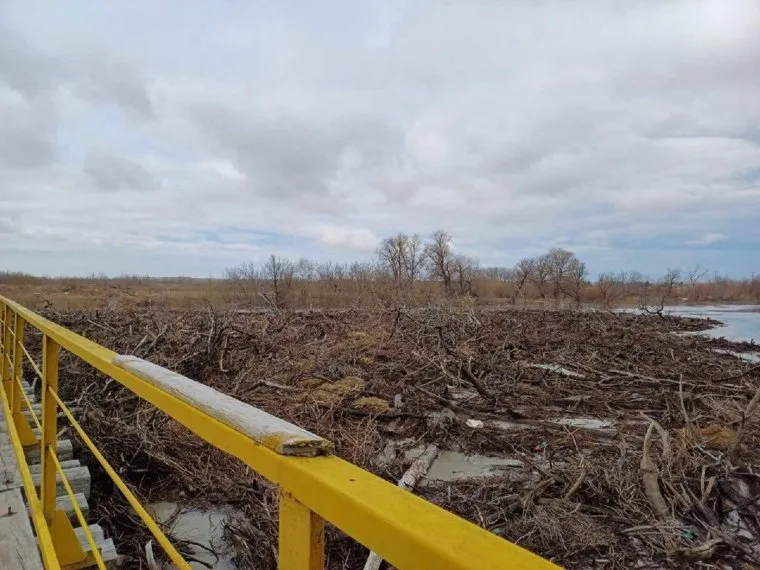 11:10 В районе пешеходного моста через Ишим образовался затор из веток и коряг. Ведутся работы по очистке реки.