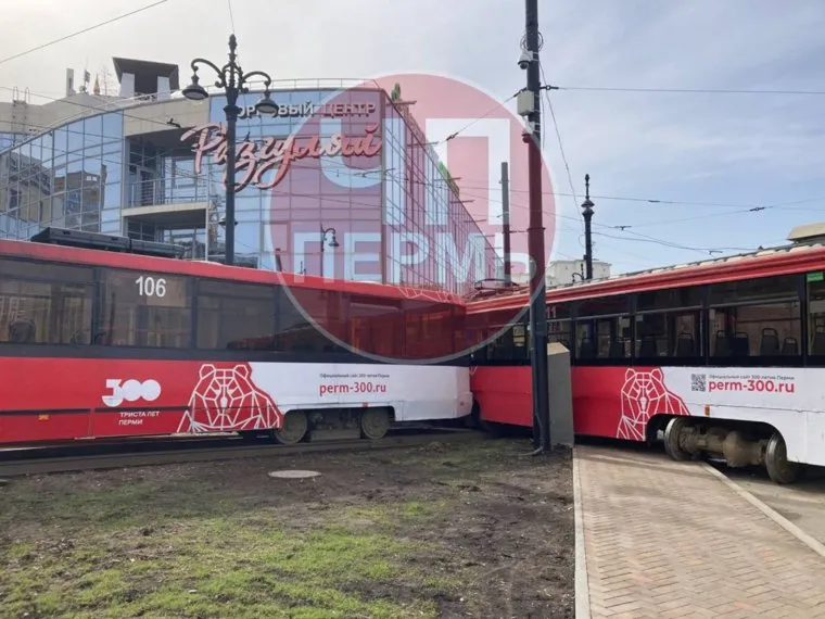 В микрорайоне Разгуляй города Перми сошел с рельсов трамвай. Очевидцы сообщают о произошедшем в Telegram.