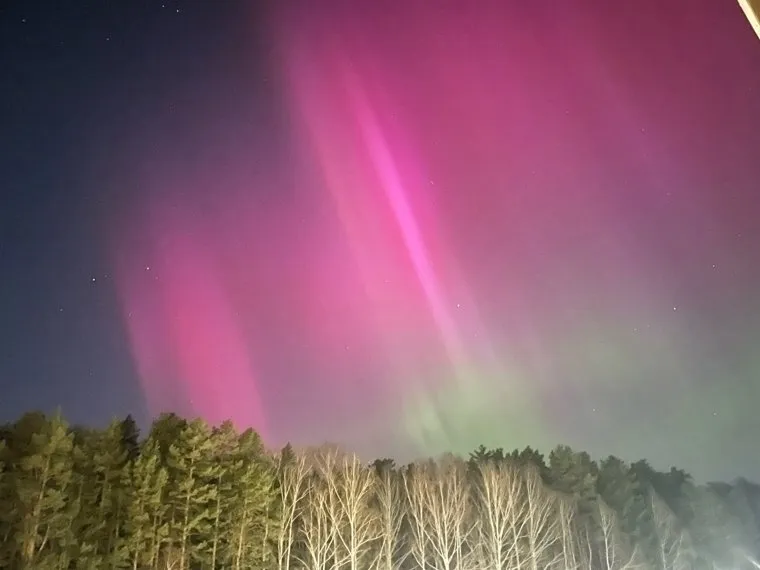 Северное сияние окрасило небо в яркие цвета также во Владимирской, Нижегородской, Рязанской, Вологодской и других областях, пишет telegram-канал Shot. Причиной северного сияния стала обрушившаяся на землю магнитная буря класса G1.