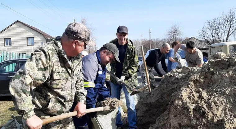 Жители села Ярково строят дамбы