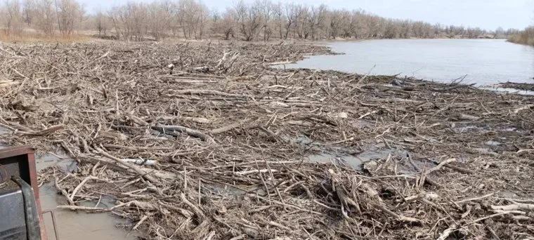 12:03 В селе Балаганы Викуловского района на реке Ишим идут работы по расчистке затора.