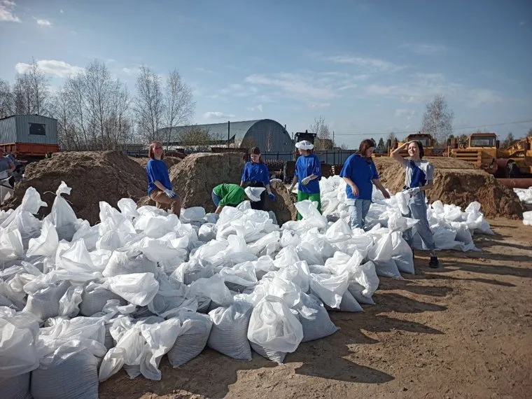 16:26 В районе Упорово добровольцы наполняют мешки песком, которые отправят для укрепления дамбы. Активисты «Движения первых» также планируют организовать культурную программу для жителей в ПВР.