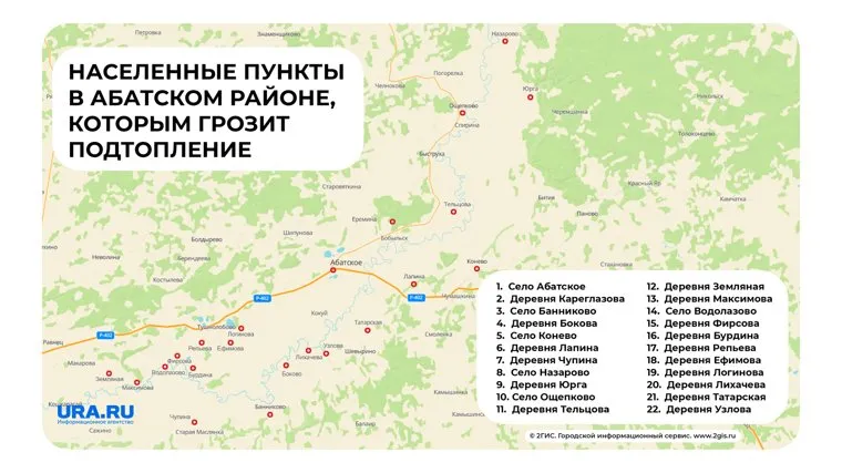 Каким населенным пунктам Абатского района грозит подтопление. Карта