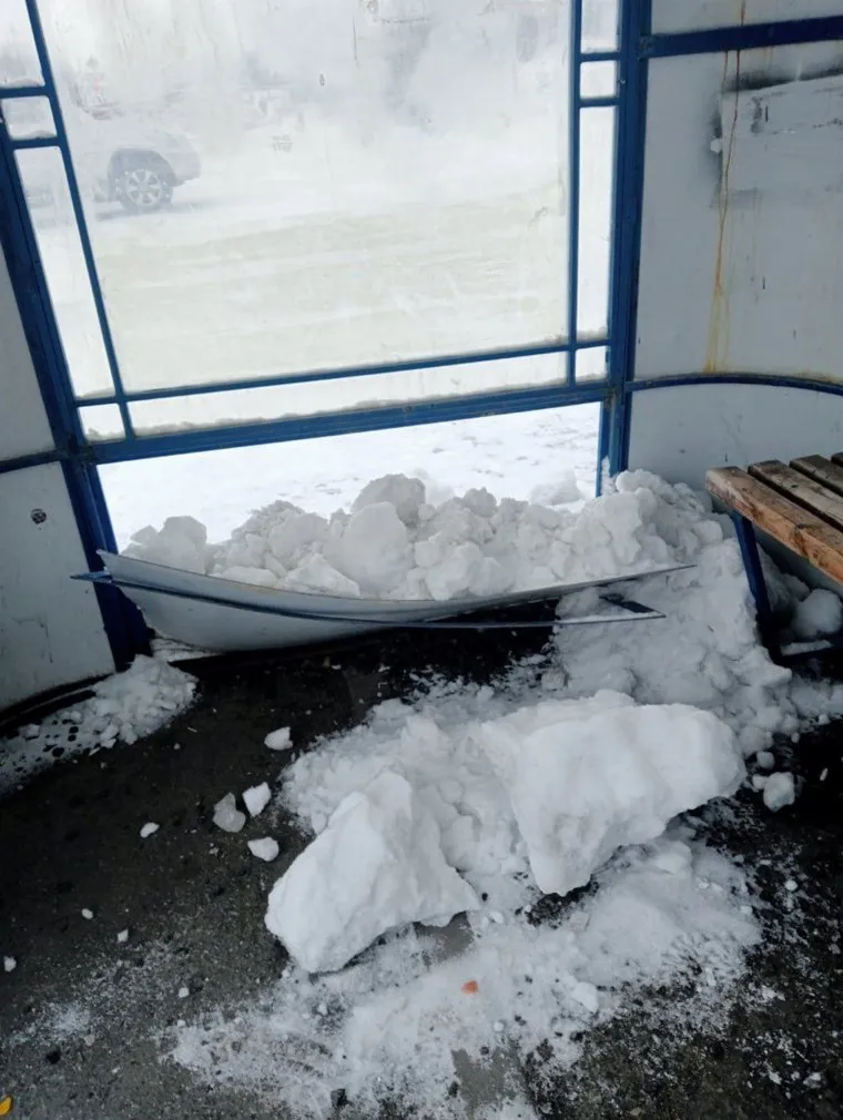 В Ноябрьске (ЯНАО) коммунальные службы повредили автобусную остановку в ходе уборки снега.