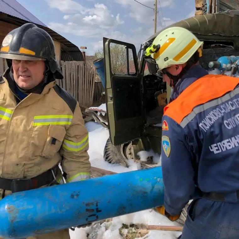 Во время ДТП из кузова грузовика вылетело несколько баллонов с газом. Баллон с пропаном взлетел и при падении пробрил капот и застрял в моторе авто. Кислородный баллон пролетел до стены соседнего дома. Взрывы газа службы предотвратили пенообразователем. Никто из жителей домов не пострадал. Водитель и пассажир «Урала» доставлены в больницу.
