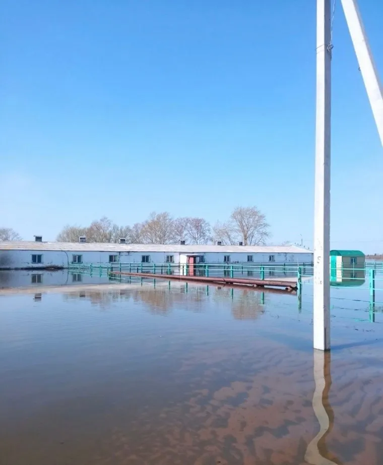 «Паводок на ферме», — указано в посте группы «ЗАО Глинки, молочная продукция Курган» в социальной сети «ВКонтакте». В комментариях пользователи пишут, что вода попала в подвал здания и затопила первые три ступени на крыльце.