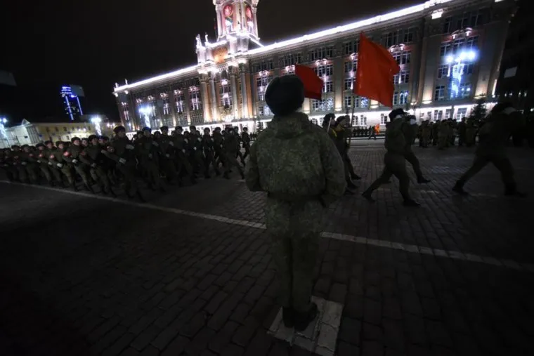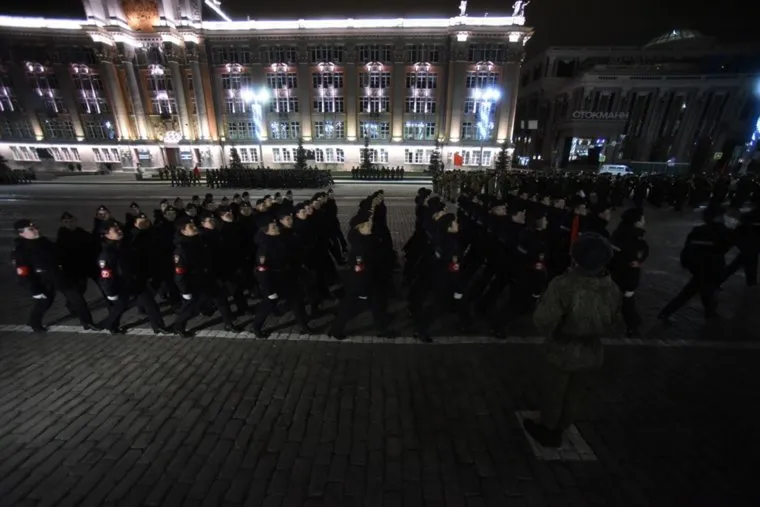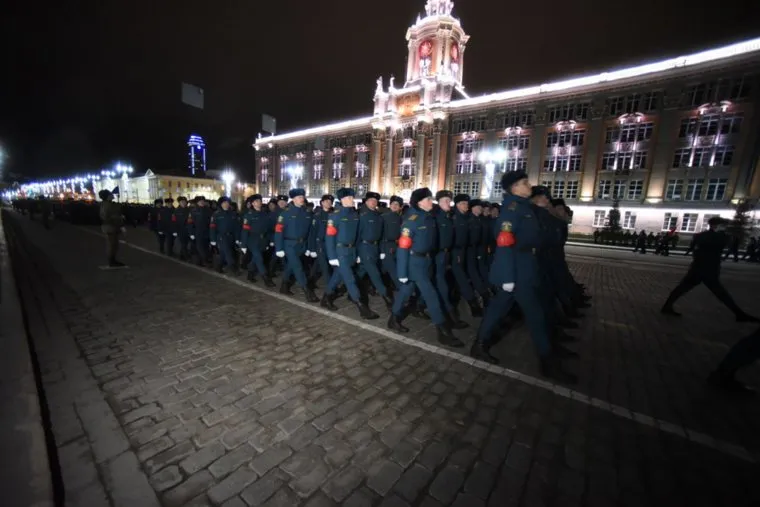 В Екатеринбурге вечером 24 апреля на площади 1905 года прошла первая ночная репетиция парада Победы. Об этом рассказал корреспондент URA.RU с места событий.