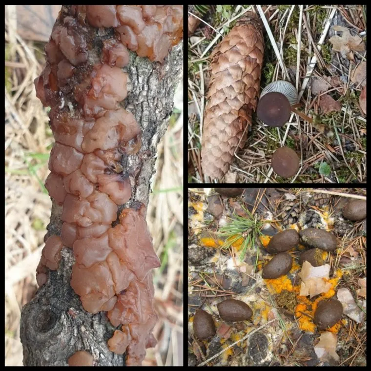 «Ведьмино масло» образуется на стволах деревьев и выглядит как янтарно-коричневые наросты на коре. «Аммиачный гриб» растет ярко-оранжевыми грибницами на лосином навозе, а шишколюб образует темно-коричневые шапочки на разлагающихся шишках.