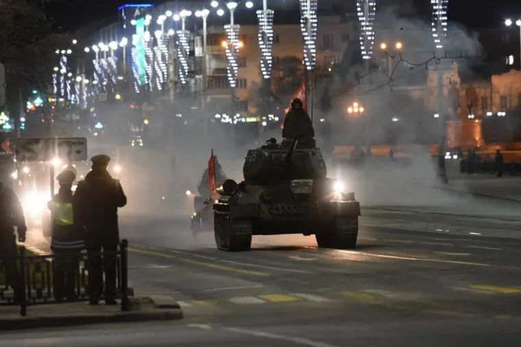 Основная часть стартовала в 21:30. Сначала по площади 1905 года прошли солдаты, машины появились после. Колонну возглавил легендарный танк Т-34, который внес огромный вклад в победу советской армии. Ожидается, что военные покинут главную площадку к двум ночи. Центр города планируют перекрыть еще три раза — в ночь с 4-го на 5 мая и 7 мая. Сам парад традиционно пройдет 9-го.