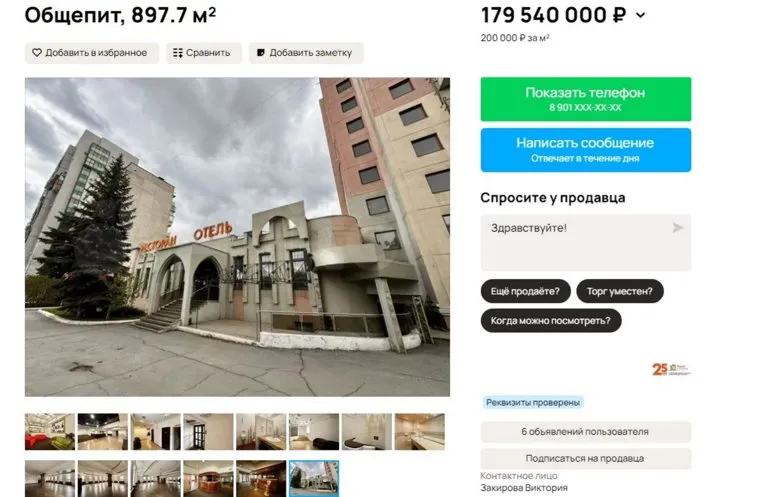 Фото: Скрин сайта «Авито». https://www.avito.ru/chelyabinsk/kommercheskaya_nedvizhimost/obschepit_897.7_m_4019794502
