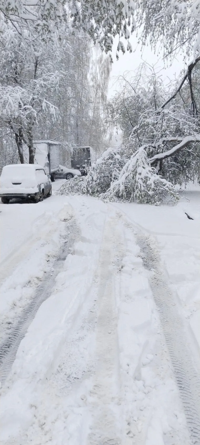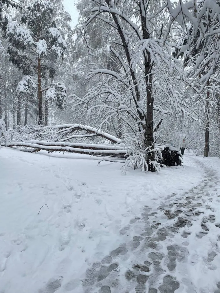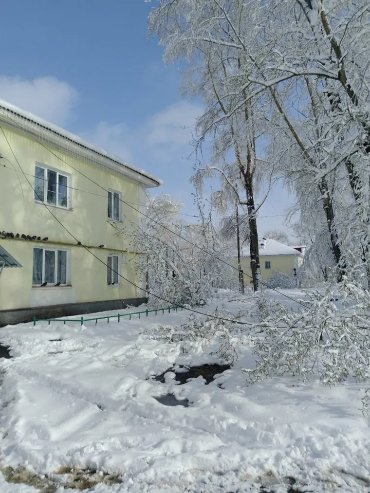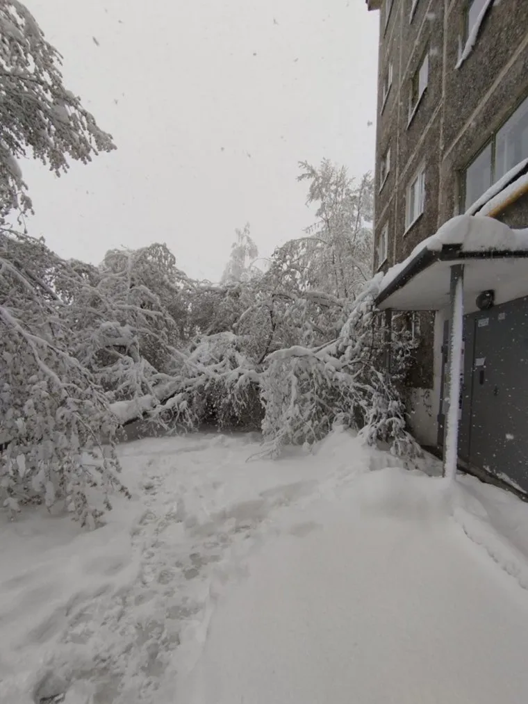05:17 В городах Свердловской области жители продолжают замечать упавшие от снега и ледяного дождя деревья. Например, в Первоуральске рухнувший ствол повис на электрическом кабеле.
