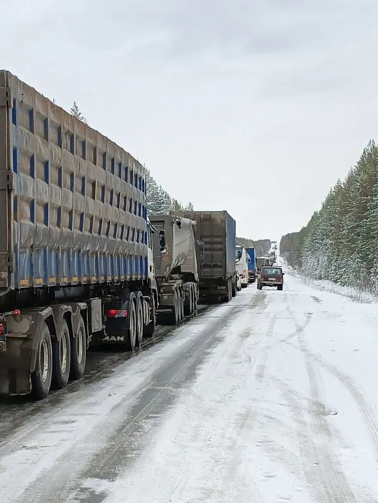17:09 Такая обстановка сейчас на Серовском тракте. «На пути из Нижнего Тагила в Екатеринбург образовалась пробка», — делится читатель URA.RU.