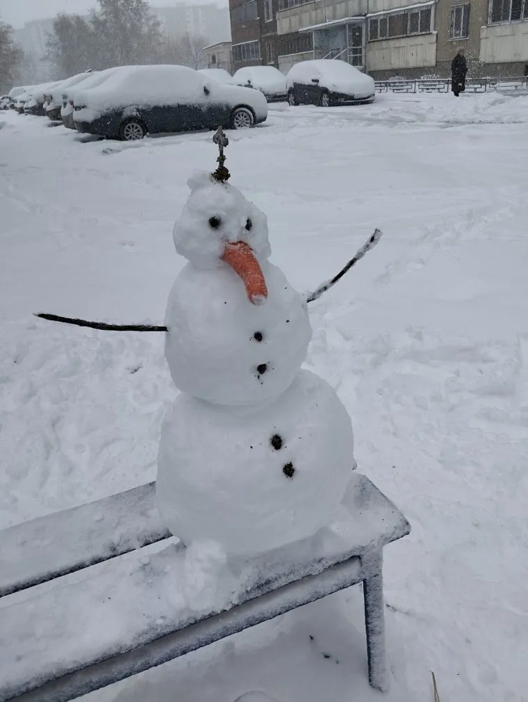 16:35 А вот и снеговик! Фото появилось в сообществе «Наш ЖБИ (Екаетринбург) в соцсети «ВКонтакте».