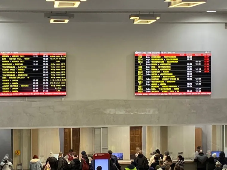 14:23 На Северном автовокзале отменили 80 автобусных рейсов. На железнодорожном вокзале Екатеринбурга задерживаются поезда.