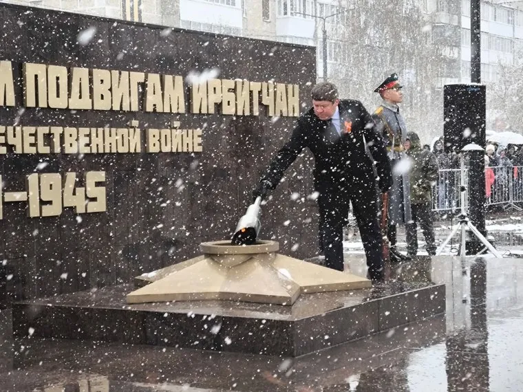 16:47 В Ирбите, несмотря на снегопад, состоялась торжественная церемония зажжения Вечного огня. Пламя зажег мэр Николай Юдин, сообщили в пресс-службе администрации города.
