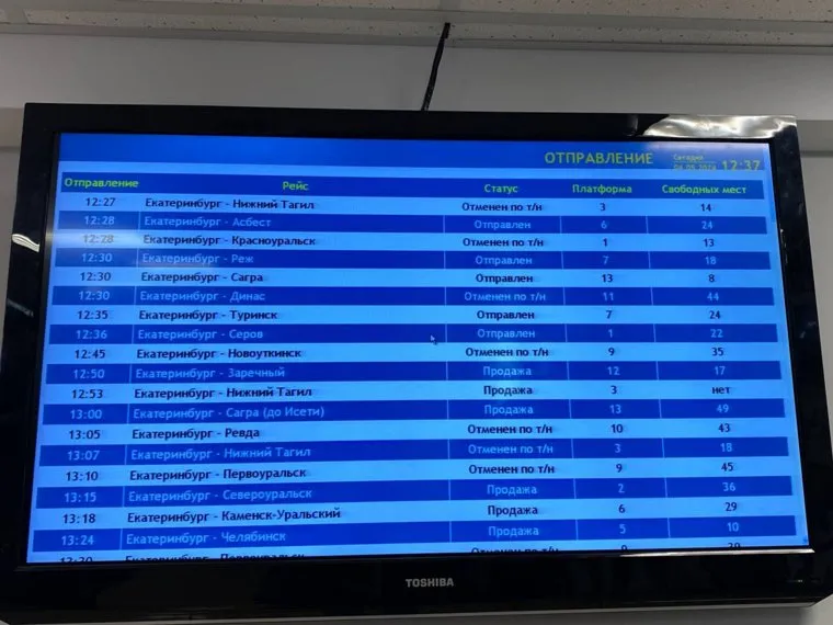 «Людей не очень много, но сидячие места все заняты», — сообщает журналист. На вокзале звучат объявления с просьбой подойти к кассам для сдачи билетов. Были отменены, в частности, несколько рейсов из Екатеринбурга в Нижний Тагил, Красноуральск, Сагру, Туринск, Новоуткинск, Ревду, Первоуральск, Сухой Лог и Заречный.