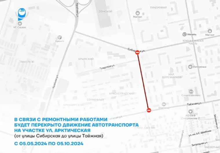 В городе уже начался сезон дорожных работ . В частности, с 15 апреля закрыли для движения участок улицы Таежной от Ямальской до Новой. Кроме того, на улице Северная магистраль обновят 2,2 километра дороги.