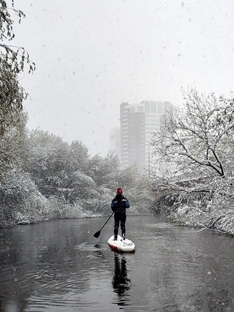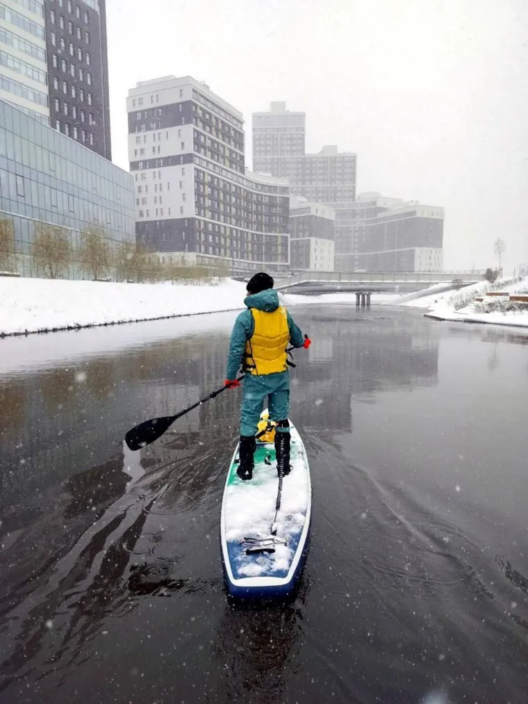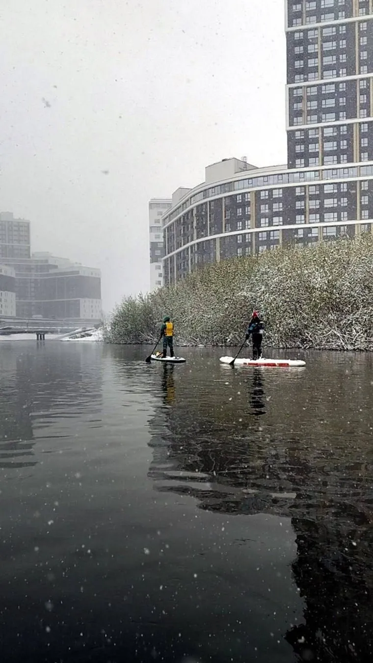 «Сноубордисты не единственные мастера экстремальных развлечений в городе! Пока на дорогах транспортный коллапс, сапсерферы в снегопад сплавились по Исети, наслаждаясь отсутствием пробок и видами с воды», — рассказали спортсмены. Ранее в социальных сетях появилось видео, где сноубордисты катаются по заснеженному газону в районе ЖБИ.