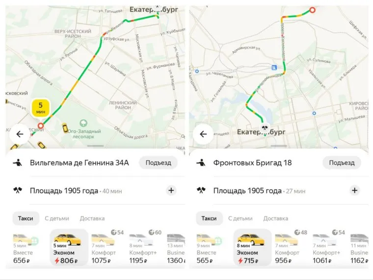 Всю ночь в городе был высокий спрос на услуги такси — екатеринбуржцы делали заказов больше, чем доступно машин. Утром вызывать такси стали только чаще, поэтому цены значительно выросли и продолжают расти. Также ситуация осложняется пробками на дорогах.