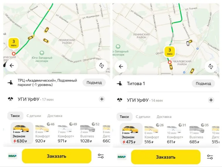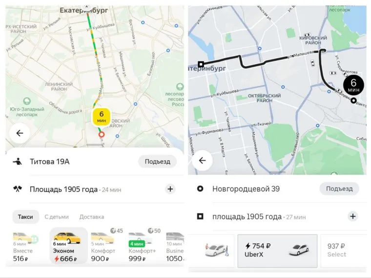 Фото: Скрин: приложения «ЯндексGo» и Uber Russia