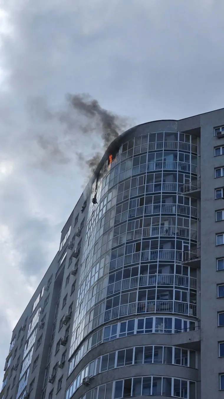«На Союзной, 2 пожар. Горит последний этаж, балкон посыпался вниз. На месте работают пожарные, уже пять машин», — сказал собеседник. Судя по видео, из окна и балкона высунулись жильцы, которые пытаются спастись от пожара.