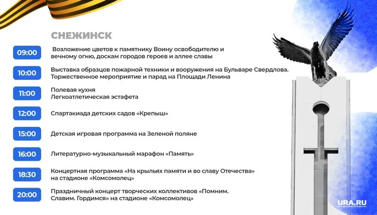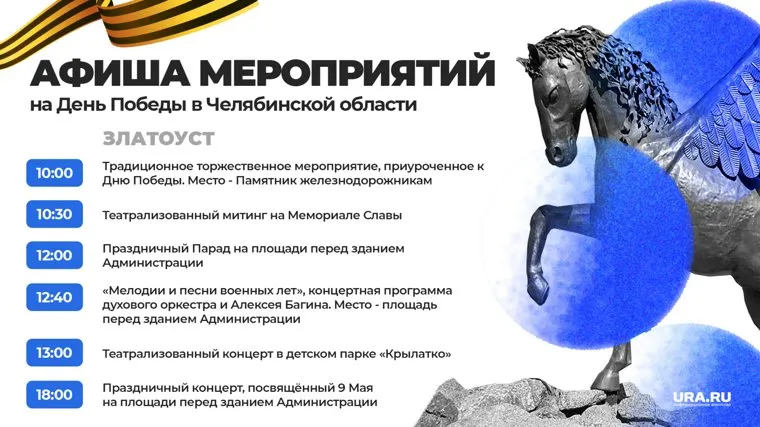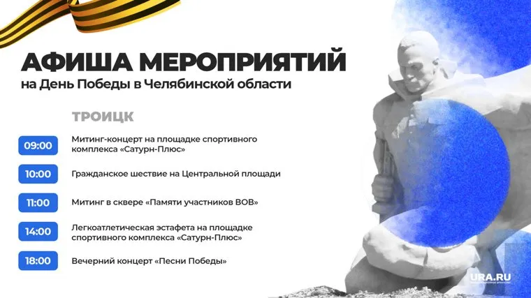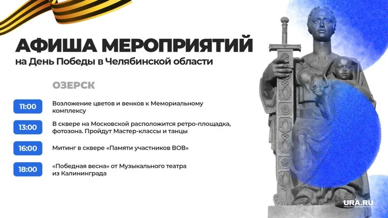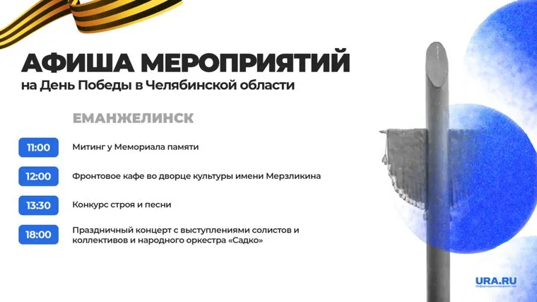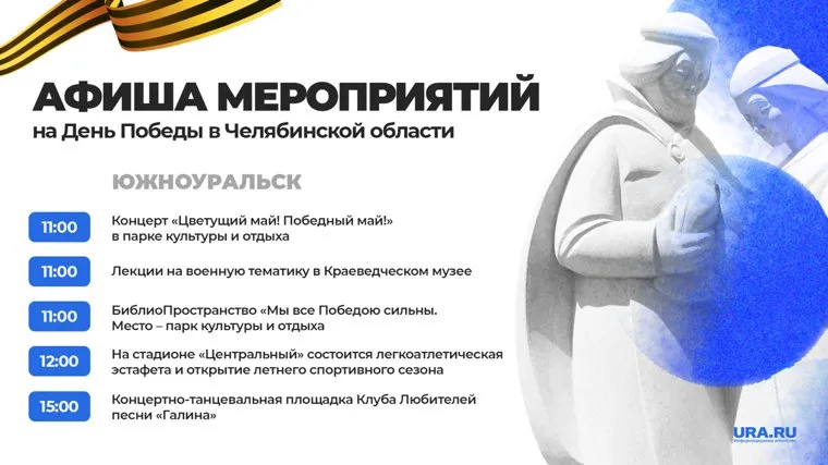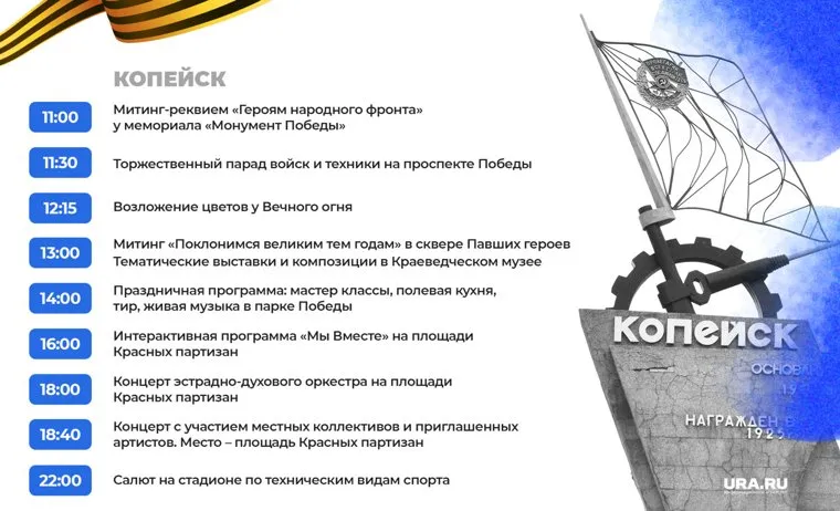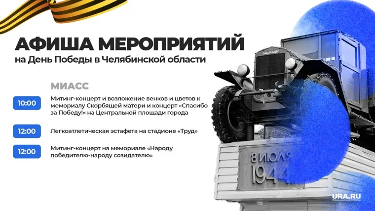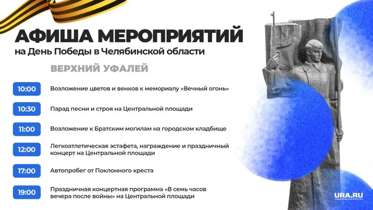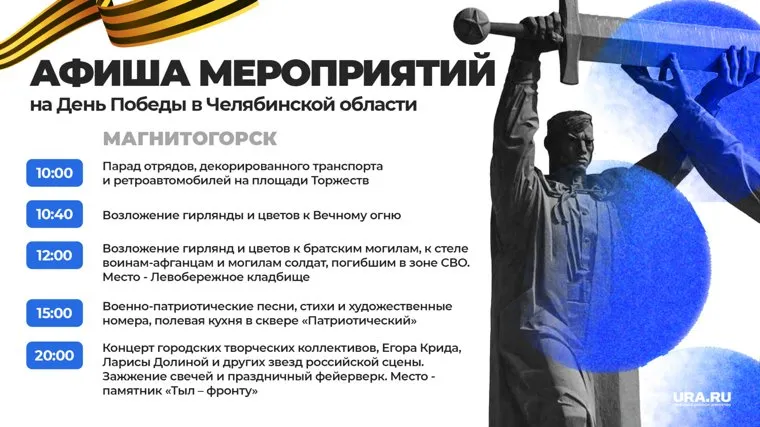 В Челябинской области на 9 мая подготовили праздничную программу с традиционными мероприятиями почтения памяти, парадами, митингами, концертами местных исполнителей и популярных российских артистов. О запланированных мероприятиях на День Победы в региона — в материале URA.RU.