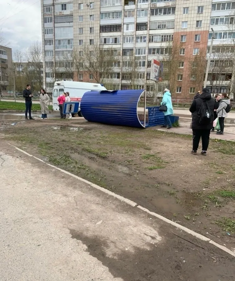 В Краснокамске ветром повалило автобусную остановку. К месту происшествия прибыла скорая