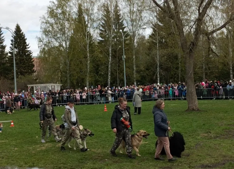 12:17 Тем временем на аллее в парке Маяковского проходит спектакль «Военные собаки». «Песики показывают, как задерживают преступников и как освоили дрессировку», — передает корреспондент URA.RU.
