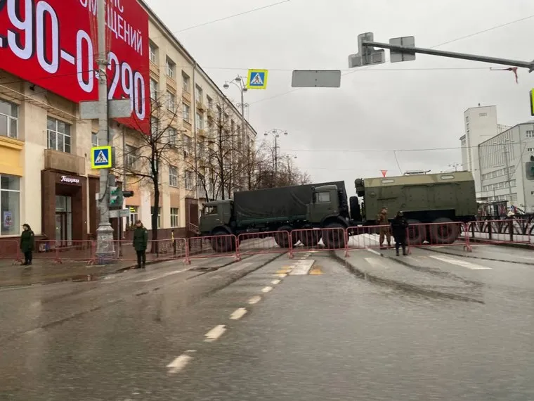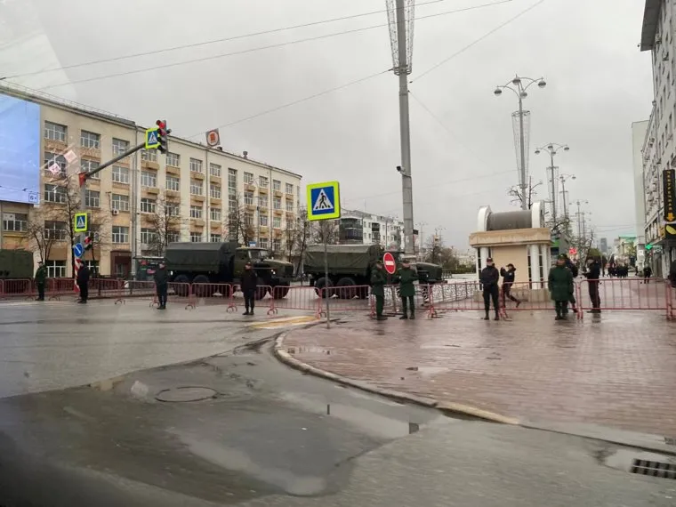 08:01 Улицы Екатеринбурга уже перекрыты. Военные стягивают технику к центру.