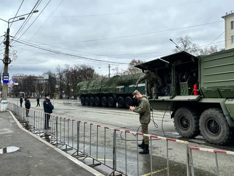 09:40 В Нижнем Тагиле идут последние репетиции колонн военных, передает корреспондент URA.RU.