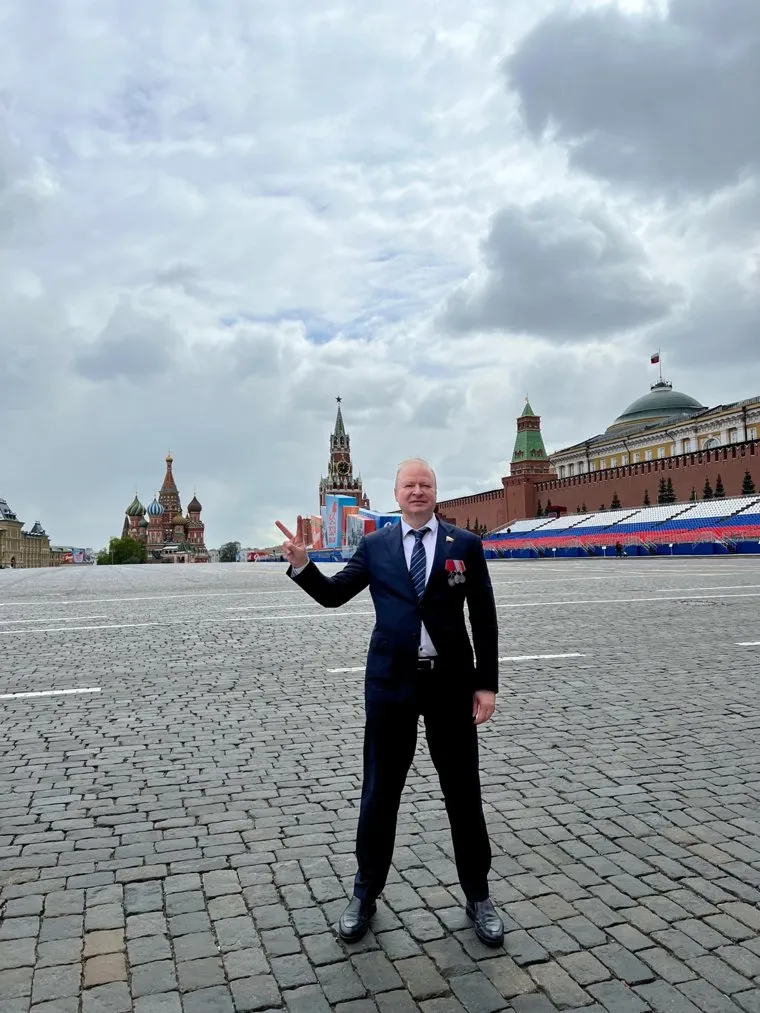 10:46 Полпред Владимир Якушев на площади 1905 года после парада Победы.