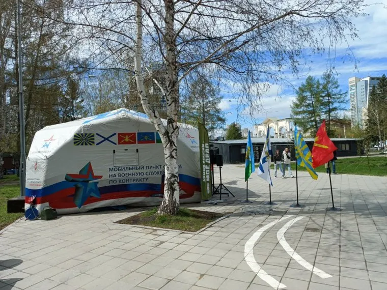 14:47 В ЦПКиО развернули мобильный пункт отбора на военную службу.