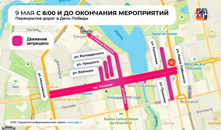 08:05 Движение по основным улицам Екатеринбурга будет закрыто до 12 часов. Будут перекрыты следующие улицы: