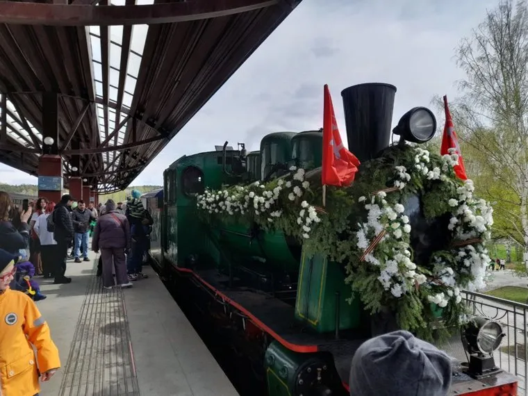16:38 Вот так украсили поезд на Свердловской детской железной дороге.
