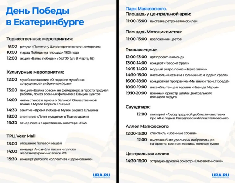 08:35 Афиша на День Победы в Екатеринбурге. Подробнее о мероприятиях читайте .