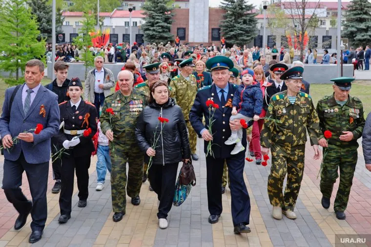 «В Кургане 8 мая в Парке Победы растянули 15-метровую георгиевскую ленту. Всем присутствующим предложили подойти и спеть „День Победы“. Акция завершилась возложением цветов к мемориалу», — рассказал корреспондент информационного агентства.