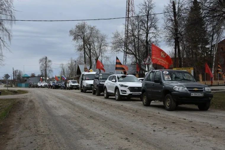 16:45 В Вагайском районе тоже провели свой «Бессмертный полк». Здесь — в формате автопробега.